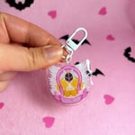 Double sided acrylic key chain, approximately 1.5 inches on its longest side. The key chain has a double sided reflected design.