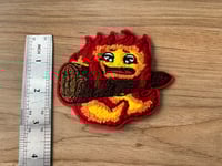 Fuzzy fire heart - 3.5 Inch - Embroidered, Iron-On Patch